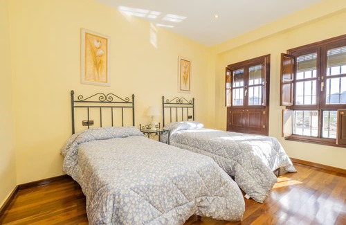 On the first floor there are three bedrooms, one of them with en suite bathroom, which has a bath with hydromassage motor (remember to use the electrical elements responsibly), a bathroom with shower in the common area and the two bedrooms have single beds making a total of four people.