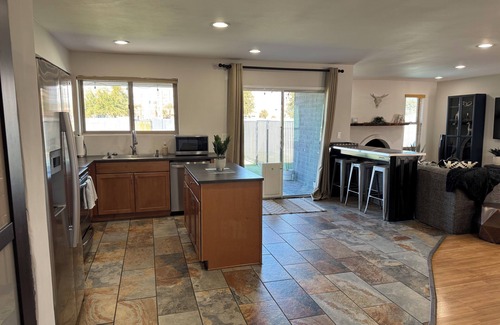 Heated Pool, doggy door, 3 Tuft & Needle king mattresses, Roku TV in each bedroom, Roku TV in living room, keyless entry, and newly remodeled interior. Pool has gate that separates pool area from backyard where kids and dogs can play.