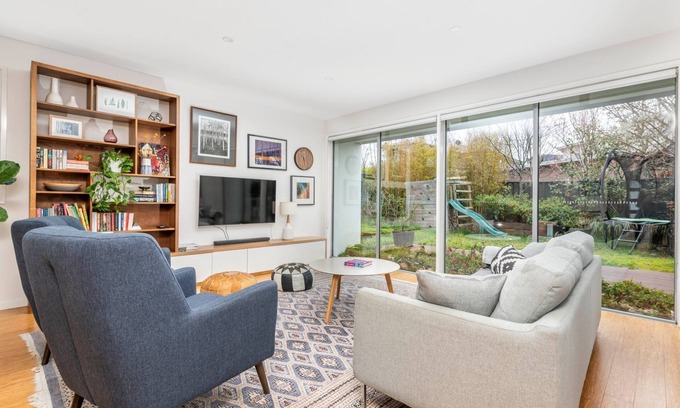 With a well-appointed kitchen, 2 modern bathrooms, generous open-plan living, and parking for 2 cars, the home also has an abundance of children’s toys and games, a large trampoline and outdoor play equipment.
