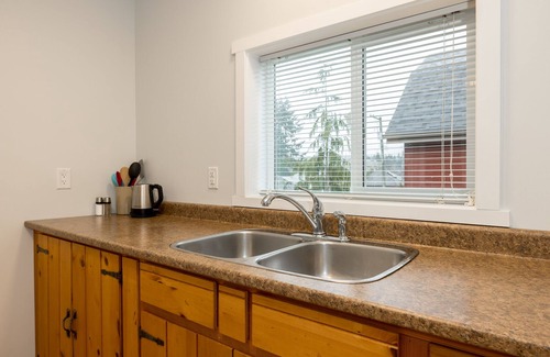 This comfortable self-contained two bedroom guest suite has its own private entrance, fully stocked kitchen, and private bathroom. Amenities such as a washer and dryer, air conditioning, TV, Wi-Fi, microwave, coffee maker and kettle (including coffee and tea) are available to make your stay comfortable. This upper level suite has a private patio are to sit and enjoy relaxing outside. Traveling with bikes? Secure storage is available for all of your outdoor toys (bikes/skis). The location is perfectly situated to enjoy some of Cumberland’s favourite pastimes, like enjoying the incredible trail network, browsing local shops, eating pizza and tacos, or drinking copious amounts of coffee and microbrews. There are other units available at this location which makes it a fantastic option if you are traveling with a group. Check out our other listings or message us for for information.