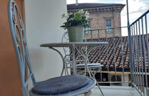 CUORE DI ALBA is an exclusive apartment in the old downtown of Alba; located in a historic building, it is characterized by a very nice environment, bright, embellished with modern appliances, decorative patterns and all comforts (wi-fi, air conditioning...). The living room, including a large a kitchen, is equipped with everything you need for short and long term stays, the 2 bedrooms could comfortably accommodate 3/4 people, a large balcony allows you to enjoy an unique view over the roofs of the historic city and the Alps.