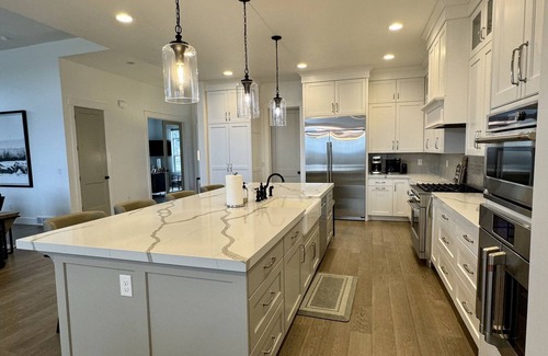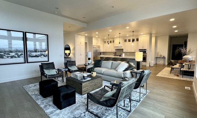 Centrally located between Heber and Park City, this breathtaking property is decorated to make you feel right at home. With lush bedding and comfortable entertainment spaces you will never want to leave. You have everything you need to stay in and cook, enjoy the scenery, or go ski and come back to the comfort.