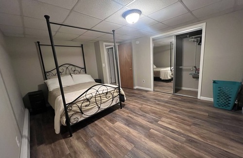 Conveniently located near, local highways, eateries, entertainment and shopping centers.This unit attached to a private home has a separate entrance for privacy. Sleeps 4 people max with one full size bed in the bedroom and a futon bed in the living room. All essentials such as shampoo, conditioner, bodywash and toothpaste as well as towels and linens provided .