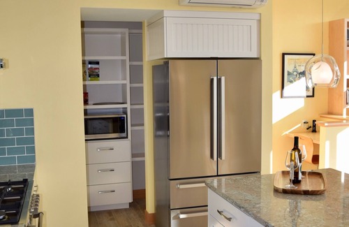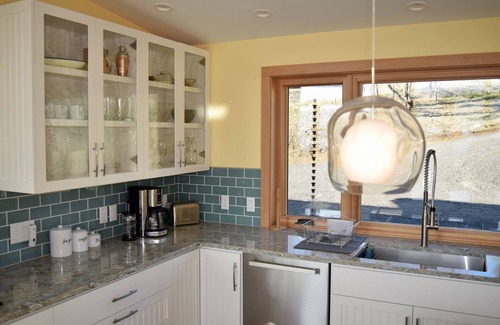 Beautiful 1360 square foot home on 2 acres. Modern, shed roof design with great windows and view of Grizzly Peak. Quiet and peaceful but only 1.5 miles from the heart of downtown Ashland. Deck with propane fire table. Kitchen with quartz countertops and island, custom Italian appliances. One bedroom has a california king with attached master bathroom, the other bedroom has a queen bed with a separate bathroom. Perfect for a couples getaway and great for those visiting Ashland for the Oregon Shakespeare Festival. Wireless internet and Satellite TV.