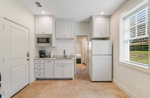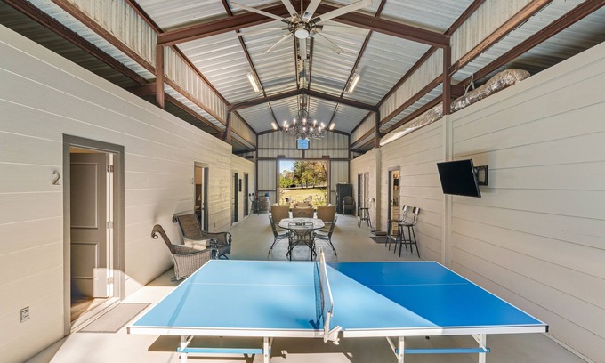 Your suite includes a convenient kitchenette and each bedroom is equipped with its own Keurig for ultimate morning brew convenience. The breezeway-style living area features barn doors on either end of the space that create the perfect blend of indoor/outdoor living. Challenge your guests to a few rounds of Ping-Pong or relax while enjoying casual conversation around the sitting area. Multiple smart TVs are equipped for flexible home entertainment.