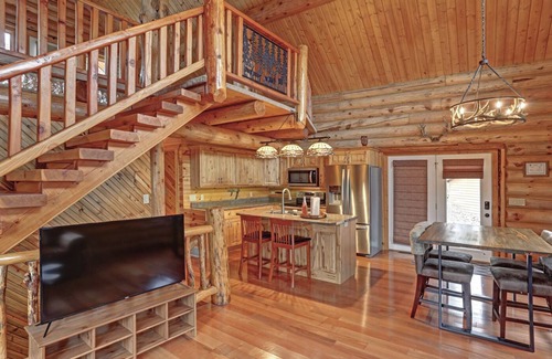 Once inside you'll love the openness of the soaring vaulted ceilings, attention to detail, rustic log interior, and oversized windows that allow tons of natural light to pour in. Hang out in the main floor family room where the amazing spacious structure of the home itself will amaze you.