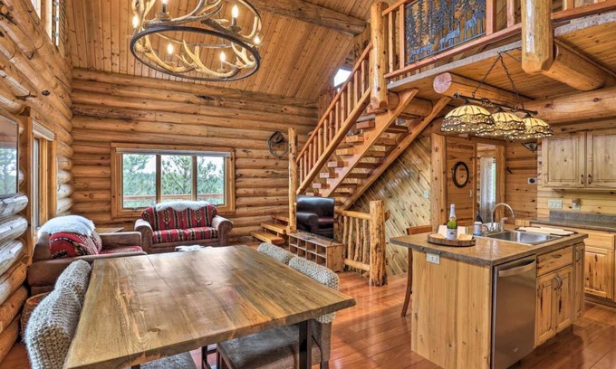 Custom Black hills log cabin w/views, secluded, 12 miles to MT Rushmore! is located in Hermosa. Custom Black hills log cabin w/views, secluded, 12 miles to MT Rushmore! provides accommodation, featuring Balcony/Terrace, Wellness Facilities, Laundry, among other amenities. This House features Balcony/Terrace, Wellness Facilities, Laundry, to make your stay a comfortable one.