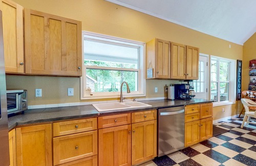 The adjacent full kitchen makes cooking a breeze with its suite of stainless steel appliances, ample meal prep space, and coffee station. When you want to escalate your cooking, fire up the grill available on the home's expansive deck.