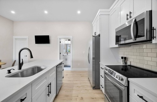 Inside, you'll find a cozy queen bed for restful sleep, a modern bathroom stocked with essential amenities and a hair dryer, and high-speed Wi-Fi to keep you connected. Everything has been thoughtfully designed with your comfort in mind.