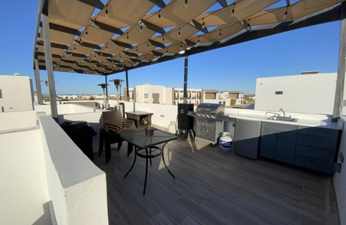 The beach is in walking distance . Has access to the resort facilities including the hotel spa, gym, game room, etc. Also has access to the restaurant “Infusion del Golfo”. The “Malecón” which is only 15 minutes away from the house has some of the best places to eat.