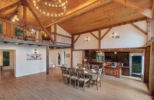 Escape to our custom cabin on 8 private acres in Tomball, TX! Enjoy peaceful views, private parking, and access to a scenic meadow bordering Spring Creek. The master suite features a king bed and spa-style bathroom with a deep tub, walk-in shower, jets, and rain shower. Upstairs, a cozy loft offers 2 queen beds, a twin, and a pull-out twin—perfect for families or groups. With 2.5 bathrooms and great views from our 2nd floor balcony, this is your perfect getaway.