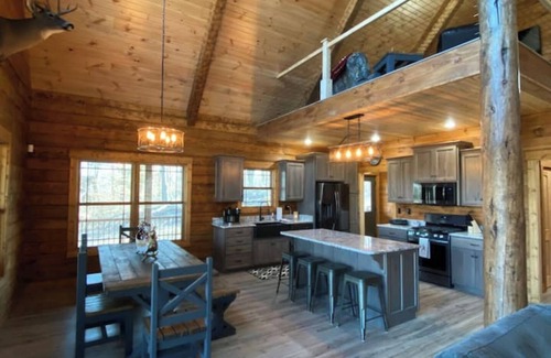 There are three spacious bedrooms plus a loft area with a pull out murphy chest bed. It has 2.5 baths and you will love the walk in marble shower. Enjoy an open kitchen, dining, and living room area perfect for entertaining. Whether you are visiting French Lick to golf, fish at Patoka, ski at Paoli Peaks, visit the wineries, hike, ride the Polar Express, visit the casino, or simply looking to get away this cabin's location is perfect for you.