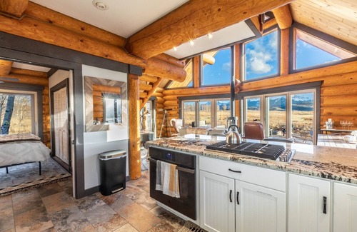 2 story, eco log home. Situated on the iconic Wilson Mesa. You may recognize this mountain from the Coors light bottle! Mountain View from every bedroom and main living areas. One bedroom on first floor. Second bedroom features 4 beds. 1 queen, 1 twin, and 2 full size beds. 30 night minimum.