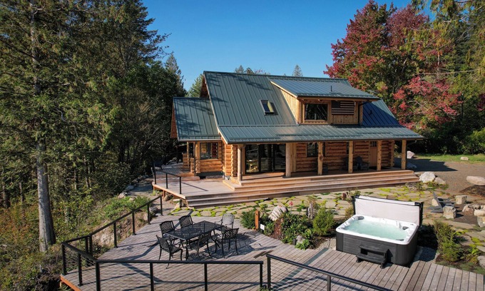 - Unwind in nature's embrace at a 1925 cabin with hot tub & river views