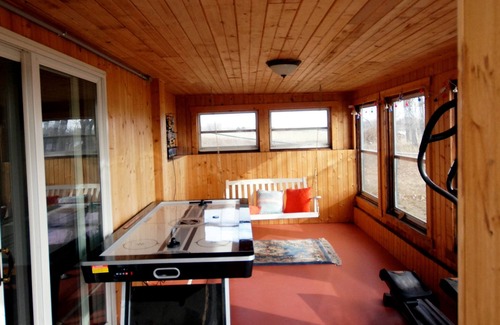 Summer and Winter RETREAT for a couple that just wants to escape or groups up to twelve. No other property has a softball field in summer and a skating rink in the winter with a warming hut! Watch Bald Eagles fish from the living room or the thousands of geese and ducks that feed in the adjacent fields during migration.