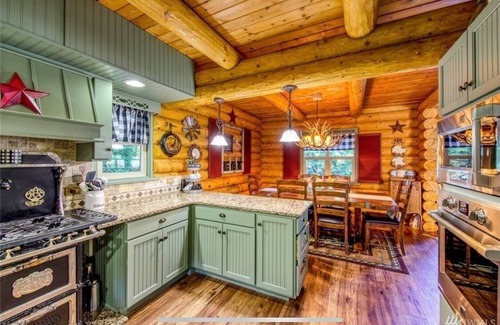 Custom, Spacious Lake-Front Log Cabin Estate: Hot Tub Shuffleboard & Pool Table | House in Bremerton