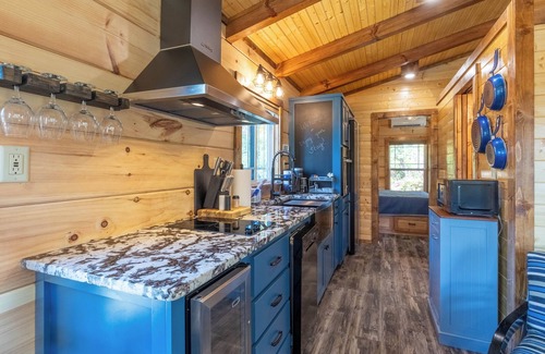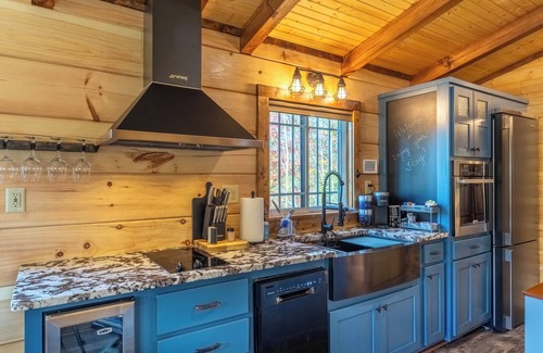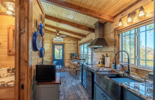 Step into a world of tranquility as you enter Little Piece of Heaven. The open floor plan, adorned with warm wood tones, creates a welcoming atmosphere. Large windows invite the beauty of nature indoors, allowing you to listen to the gentle sounds of the forest and breathe in the fresh mountain air.