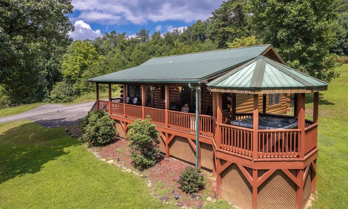 This beautiful vacation home has plenty of outdoor spaces to enjoy the Great Smoky Mountains. Breathe in the mountain air on the full-length covered front-porch. Bring out a pitcher of sweet tea and lemonade, and chat with your family while you soak in all of the sounds of nature.