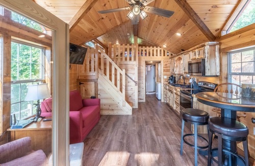 This adorable cabin will welcome you from the moment you first step inside! The spacious open floor plan and soothing natural wood tones will surround you and remind you that you’re in the middle of nature. Throw open the windows so you can hear the wildlife and breathe in that lush mountain air!