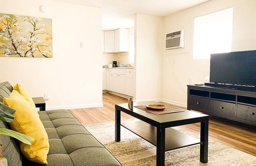 Quaint 1 bedroom apartment located on lower level with private decked entrance from the parking lot. Keyless entry, ample parking, full kitchen, queen bed, fast internet. This corporate apartment is a reasonable 10 minute drive to downtown Knoxville. Visit the Tennessee Theater, go see a UT game, and check out Market Square. Also, there are hiking trails, a disc golf course and kayaking nearby. (space heater and wall unit A/C).