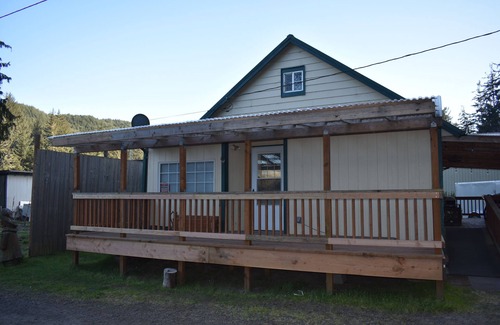 Two-story, two bedroom home sleeps a maximum of Five. Near Halfmoon Bay where the Umpqua meets the Pacific. Close to the sand dunes, fishing charters and restaurants. Secure and safe with plenty of parking. Trailer accessible plus room for boats and other toys. Small kid-friendly creek in back for swimming or fishing. Room for bbq and campfire. Full kitchen with dishes and appliances. Television for streaming movies. Internet access.