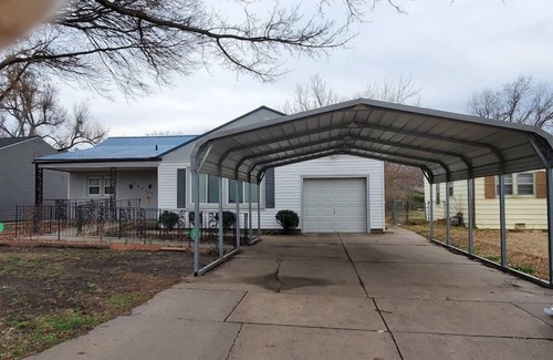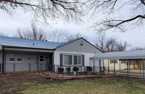 Handicapped accessible ranch style home with all the comforts of home. Wifi - SMART TV with all local channels and Streaming Apps for sign in. New interior decor with easy access to I-35, Derby, Spirit Aerospace, and McConnell AFB. This home has a full 3 beds, an office workspace, covered parking and is nestled in a quiet southern Wichita Neighborhood.