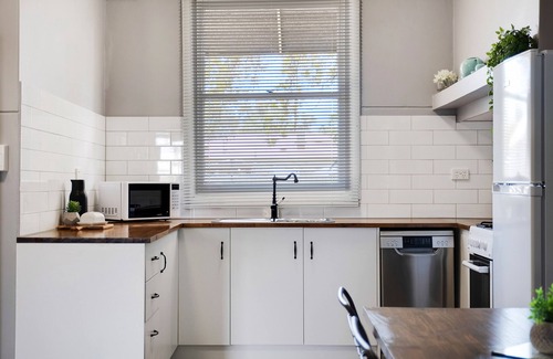 This little house is equipped with tea and coffee making facilities, a full sized fridge, BBQ, microwave, toasted sandwich maker, dishwasher and oven and cooktop.