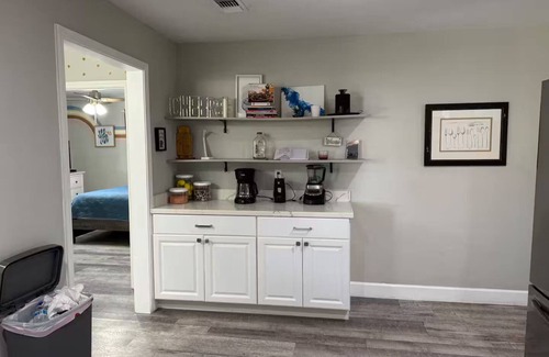 Check out the huge living room, brand new kitchen, and super clean atmosphere. We have 3 very cute bedrooms, and two bathrooms for large groups.