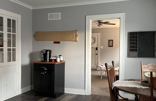 Modern bungalow with all the amenities for two people or an entire family to enjoy a stay in Atchison. Minutes from Benedictine, downtown and the river walk. Guest will enjoy rooms on two levels--privacy for everyone! Relax and enjoy a meal prepared in a fully equipped kitchen or kick back in the well appointed living space to play a family game or watch movies on the flat screen TV. Clean, cute and cozy!