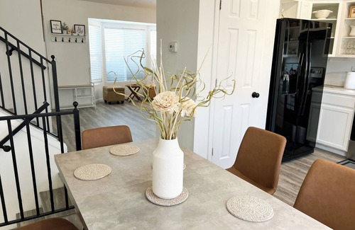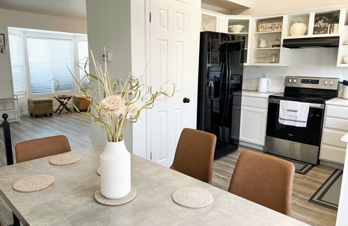 Discover the beauty of West Valley City from this 4-bedroom house. With a king bed, full bed, bunk bed, and queen bed, guests will find a phenomenal space to relax or play games. Enjoy the convenience of amenities like a hair dryer, heating, AC, and iron. With 2 bathrooms equipped with a hair dryer, guests will have a pleasant stay. It's easy to see why you'll be able to unwind at our place.