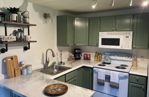 Just because you're in a cabin doesn't mean you have to live uncomfortably. We have running water and WiFi along with a Smart TV in the living room. There's a fully stocked kitchen for cooking your favorite meals, along with a full bathroom (stall shower) huge fluffy towels and linens designed to make you feel like you're living in luxury in the woods. Unfortunately there's no washer or dryer however there is a laundry facility right across the road.