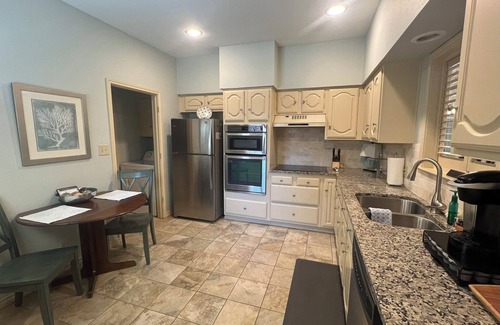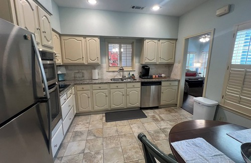 This cute cottage sleeps six and has all the comforts of home! You will find it has high-end furnishings and feels like a true Vacation home with great pops of color! We've actually had several guests tell us it's the best vacation home they have ever stayed in as far as condition and amenities. The master bedroom is very large with one king bed and two twins (trundle). The secondary bedroom sleeps two with one queen bed. Each bedroom has a private bath with one bath having access through the hall, as well. Both baths have been beautifully remodeled. The kitchen boasts granite counter tops and stainless appliances. There are plenty of dishes, pot and pans, utensils and glasses. Also included in the kitchen is a blender, two coffee makers, a crock pot and toaster. It has all you will need! The thing that actually makes the home so quaint and gives the feel of a cottage are the plantation shutters, as well as the screened door leading to the fenced back patio (to contain little ones from the lap pool). The back patio overlooks the refreshing lap pool (heats like a spa, though not a hottub), as well as a large gazebo! The neighborhood is extremely quiet and has huge trees throughout, as well as a couple of lovely lakes. It's a wonderful place to just walk and enjoy nature. This home is a true gem, and we are confident you will enjoy your stay as many others have! Not only that...it's super convenient to major highways...George Bush and Central Expressway. Interstate 30 is approximately a 10-15 minute drive and Dallas North Tollway is about a 10-15 minute drive in the opposite direction, as well! Just be sure to take a look at the reviews for honest opinions of the property!