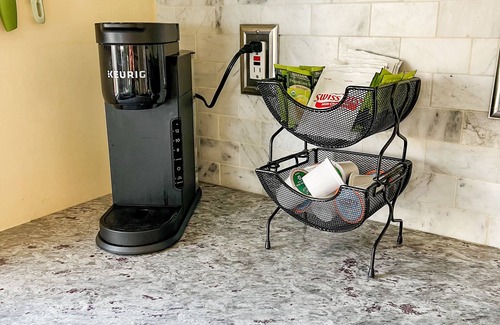 Kitchen is stocked with all cooking essentials, including a Kuerig with coffee, tea and hot chocolate. Cooking spray/oil, salt and pepper, and all the supplies you need to make great meals!