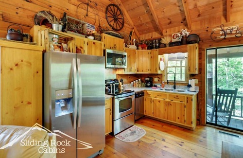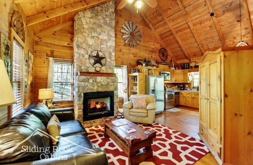 Song of the south is an adorable, rustic oasis on Turkey Creek (not a fishing creek). With end of the road PRIVACY, heavely wooded and a firepit area right by the water. Song of the South is a Sliding Rock Cabin that offers a screened porch, patio and deck with a large hot tub, Gas Grill, creekside firepit and FENCED yard off of the screened porch. You may want to laze away the day in the hammock, roast s'mores in the creekside firepit, maybe hike the Ellijay and Blue Ridge's mountainous trails, then in the evening soak in the large hot tub, or cuddle up next to the fireplace and watch an old movie on your large screen SmartTV, maybe sleep in late on the King Size bed in the loft.