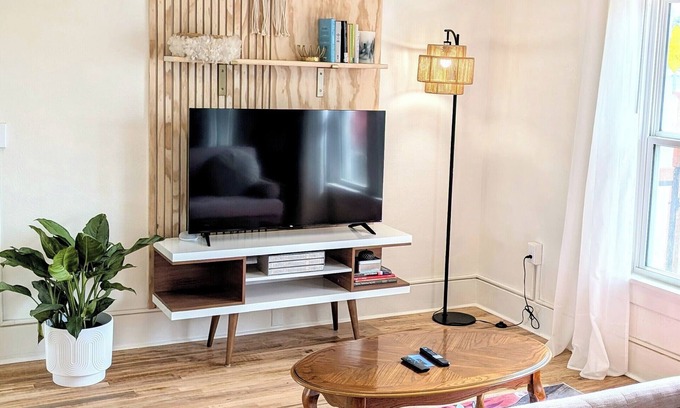 Enjoy the convenience of amenities like heating, WiFi, AC, a washing machine, and a hair dryer. The home also offers an adorable outdoor space and walkable landscaping.