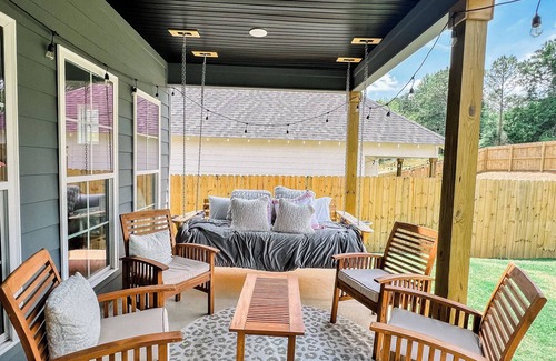 This is a new construction home that is .5 miles from Auburn University, and all that Auburn has to offer. This open concept home has great amenities including large living room with TV for game days, grill, pizza oven, gorgeous outside swing and outside space. This home is perfect for your weekend game day fun! We have 2 bedrooms with 2 beds. There is a large couch that would sleep 2 additional people if needed.