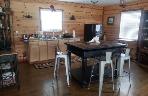 If you love to fish, boat, hike or bike this is the place for you! Cozy one room loft apartment just minutes from the White River and Bull Shoals Lake; hiking & biking trails. Plenty of parking. Sleeps four comfortably, five if a couple shares the queen size murphy bed. Watch the beautiful sunsets from the covered deck. Includes outdoor grill, private bathroom with shower, kitchen with refrigerator, microwave & coffee maker. Queen Murphy bed, twin daybed with twin trundle & futon couch. Large kitchen island seats four. Dish TV & free Wifi with a dedicated work space.