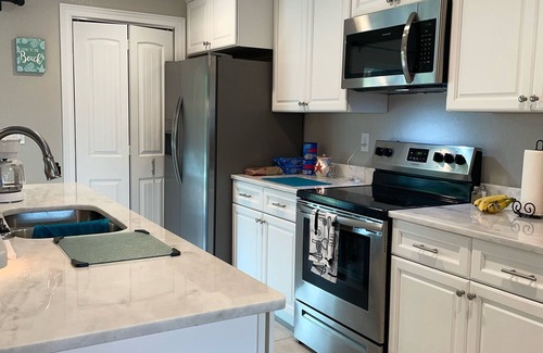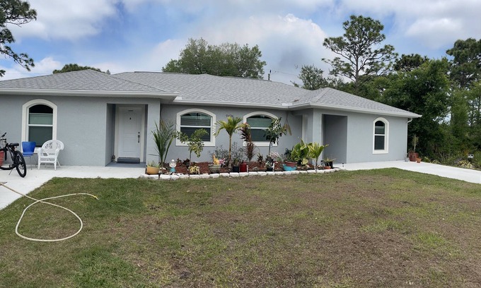 Newly built duplex located in the center of Englewood. Right Across from Tringali Park, Community Center, Library, dining, entertainment, shopping, Gulf Beaches only 5 miles away! Property is fully furnished. Living room has a 65 inch smart TV to enjoy all your favorite apps, websites, movies, and so much more! Roku is also available to use. And unlimited WIFI is provided to connect and enjoy all your devices. 2 recliners, and couch leaving plenty of comfy places to relax. Kitchen has beautiful white/marble granite counters with a walk around double sink/breakfast bar, all stainless steel appliances, and a kitchen table and chairs in the dining room that is combined with kitchen. Sliding glass doors from kitchen/dining area lead you to the screened in lanai. Lawn chairs, lounge chairs, and gas grill are provided to enjoy the beautiful weather during your stay. Washer and dryer provided in your unit. Main bedroom has queen sized bed, end tables, dressers, closet, and clothing shelve in closet. Main bathroom is attached to the master bedroom. Features walk in shower with plenty of room, sink, toilet, storage. Guest bathroom has tub/shower combo, toilet, storage, & sink. Guest bedroom also has queen sized bed, dressers, table, closet with shelves. Does have a storage shed with lock also. This home is located in the perfect area to enjoy all that Englewood has to offer. Within minutes of golf courses, Wal-mart, grocery shops, shopping, entertainment, dining, parks, beach, etc. Don't miss out on this great location! It won't last long, so what are you waiting for?! Get your vacation started! Contact me with any questions you may have!