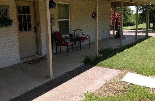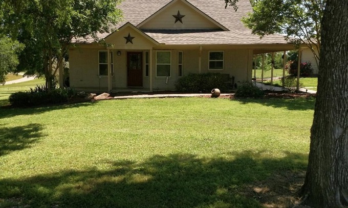 Cozy 2 bdrm cottage with queen beds. One bed has Beautyrest Lift at head and\or foot. Bathub/Shower combo. Jacuzzi tub. Has Washer/Dryer. Beautifully furnished. Enjoy morning coffee on 1 of 3 porches with gorgeous Sunrises on the back porch & breathtaking sunsets on the front porch. Security System & gated access. About 10 minutes to Downtown Bryan, 15 minutes to both the Rellis Campus, A&M Campus & George Bush Library. Cleaning Fee is $$125.00. Extended stay cleaning fee is $75/weekly. Extended stay travelers will be responsible for paying housekeeper. No trash to be left outside for Critters to get into. Please see Guest Checklist on Refrigerator. No dogs inside the house. No eating in bedrooms. Please do not rearrange furnitureor rug. No children under 16.
