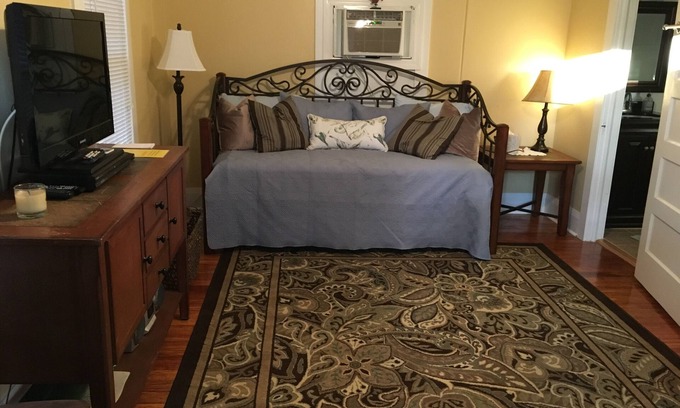 The one room apartment is equipped with a daybed with pop-up trundle, highboy table & chairs, chest of drawers, 32" flat screen cable TV, plus free internet, full kitchen, brand new bathroom with glass enclosed shower, outside seating and gas grill available. Private entrance and plenty of parking available. Very safe neighborhood.