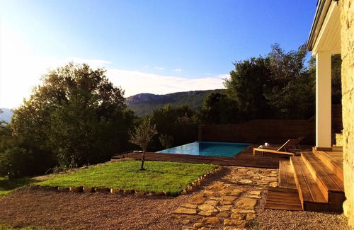 Medieval Old city of Buzet lies on a hilltop above a fertile valley of the longest Istrian river Mirna which is visible from the large Skadanjs' terrace. Skadanj is situated in a small village Krbavčići near the mountainous plateau Ćićarija. Previously, Skadanj was an old threshing barn that has been built by our grandparents, located at the end of the village and surrounded by the green area. In 2017 it was renovated. Outside the house is a beautiful swimming pool with the wooden sun deck.