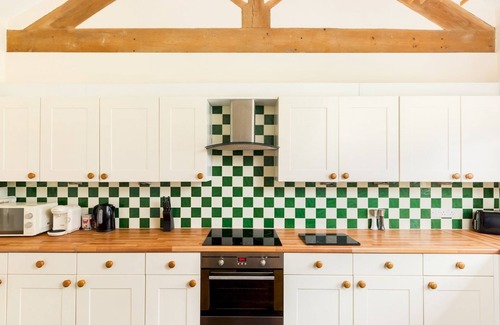 The fully equipped kitchen boasts modern appliances and all the culinary essentials you need to prepare delicious home-cooked meals in the countryside setting.