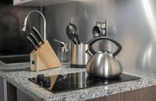 Our spacious two-bedroom apartments can accommodate up to six guests with a queen-size bed and a pull-out sofa that sleeps two. You'll also have two modern bathrooms, both of which feature rain shower heads. You’ll adore your breathtaking kitchen that’s decked out with stainless steel appliances, granite countertops, a Keurig machine, and more! After a long day exploring the city, unwind in front of your flatscreen TV with Roku and unlimited wifi. Better yet, take in the sights of downtown on your own private balcony.