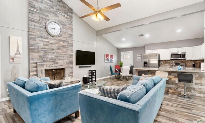 CYC Mega House with BBQ Gazebo offers accommodations in San Antonio, 8 miles from SeaWorld San Antonio and 10 miles from The Shops at La Cantera. This property offers access to a terrace, free private parking, and free Wifi. Outdoor seating is also available at the vacation home. The air-conditioned vacation home consists of 9 bedrooms, a living room, a fully equipped kitchen with a dishwasher and a coffee machine, and 6 bathrooms with a walk-in shower and a hair dryer. Towels and bed linen are available in the vacation home. There's also a seating area and a fireplace. Guests can enjoy the outdoor swimming pool and garden at CYC Mega House with BBQ Gazebo. The Alamo is 10 miles from the accommodation, while Ripleys Believe It Or Not Museum is 10 miles from the property. San Antonio International Airport is 10 miles away.