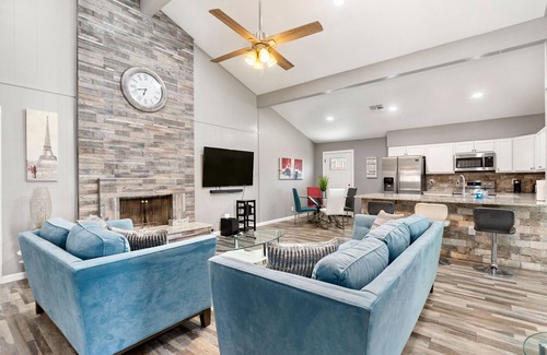 9 Bedroom 5.5 bathroom Mega house with large outdoor BBQ gazebo. Huge smart TVs in every room total 12 TVs. You will never see this in any other vacation rental. Huge Olympic size community pool less than 5 min walk with Tennis Court. Pool $5 per person charged by city. Tennis court free.