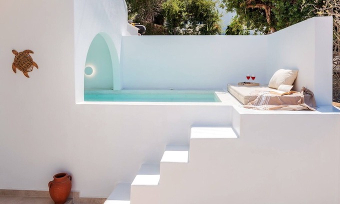 - A privately owned home adorned in the distinctive, traditional Cycladic style.