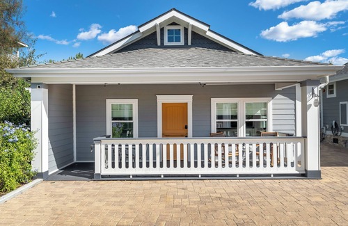 Built and open for guests in 2022, a California Craftsman style Santa Ynez Cottage welcomes you with a generous 450ft2 of space and the long sightlines of a Studio floorplan. Included is a master bathroom with walk-in shower, kitchenette, sitting & dining/work areas, a spacious 200ft2 front porch with bistro set and rocking chairs, and thoughtful features and premium amenities throughout. Also included are free on-site parking spots several with Level 2 Electric Vehicle chargers (see specs below). From here, a short one minute walk takes you to downtown Santa Ynez where you’ll find several of the best restaurants in the valley, tasting rooms, museums, and unique shops. There is even an authentic saloon and a custom cowboy hat shop – both appropriate for this town where ‘Wine Meets West’.