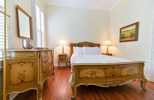 The Cypress Room is located on the first floor of Granville Queen Inn and is ACC (accessible) with easy access to the parlor, porch, and dining room. It features a European queen-size bed, one-of-a-kind historic antique furniture and the private en suite bathroom has a wider and larger walk-in shower.