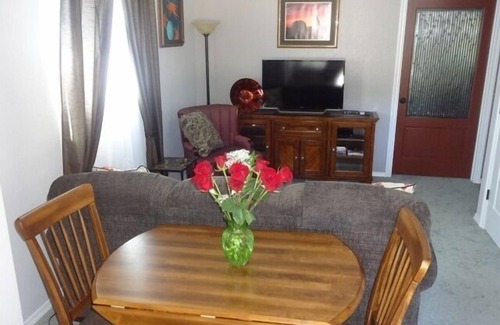 Our suite amenities include; free Wi-Fi, 2 - 40' Sony flat screen TV's, a microwave, small refrigerator with freezer, Keurig coffeemaker, a Queen Size bed in the bedroom and a queen-size hide-a-bed sofa in the living room. This is a very quiet, comfortable suite. We're conveniently located on the south edge of town right off of highway 101.