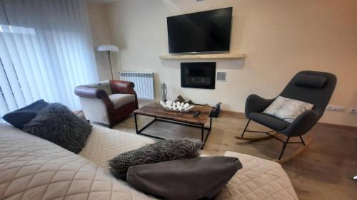Dúplex Terraza Golf 3 Dormitorios 2 Baños offers accommodations in Sabiñánigo, 16 miles from Lacuniacha Wildlife Park and 27 miles from Canfranc Train Station. This property offers access to a balcony, free private parking, and free Wifi. The vacation home also offers an outdoor swimming pool and a garden for guests to relax in. Opening onto a terrace, this air-conditioned vacation home comes with 3 separate bedrooms and a fully equipped kitchen. A flat-screen TV is provided. The accommodation is non-smoking. Royal Monastery of San Juan de la Peña is 28 miles from the vacation home, while Peña Telera Mountain is 17 miles away.
